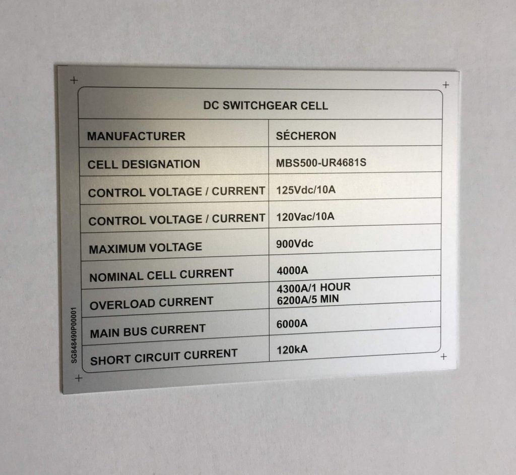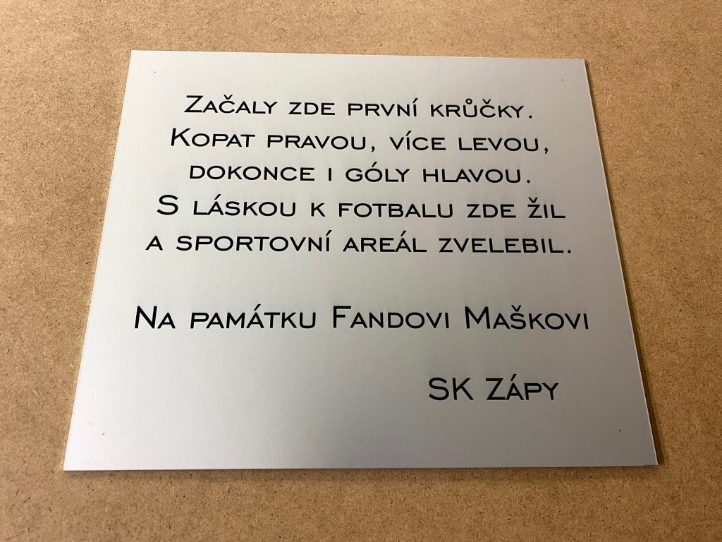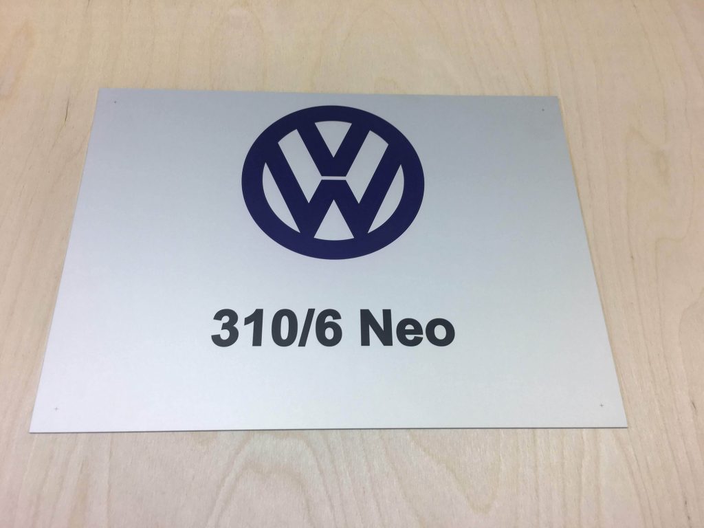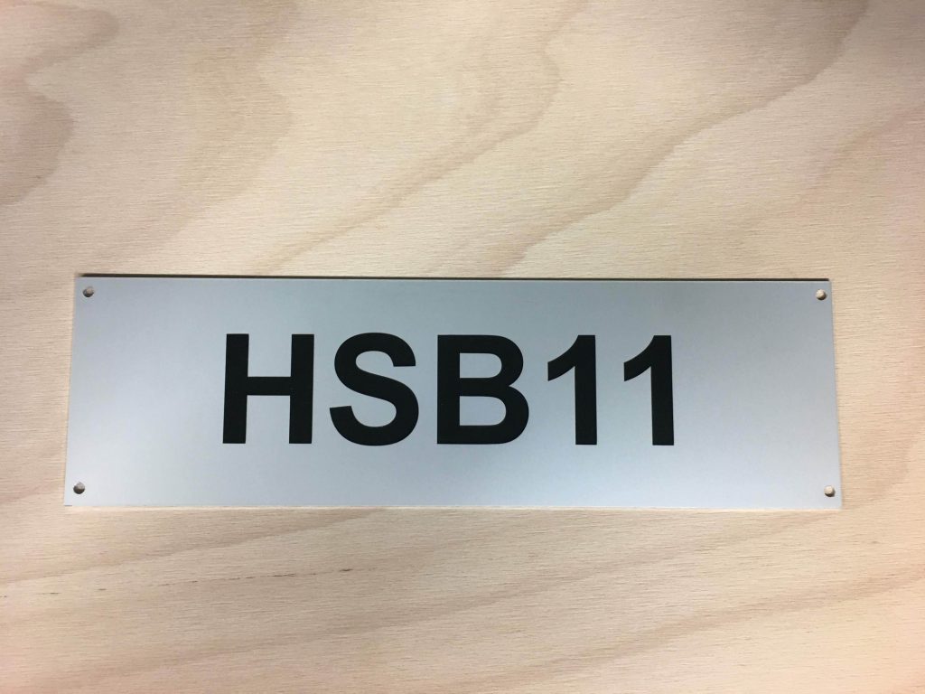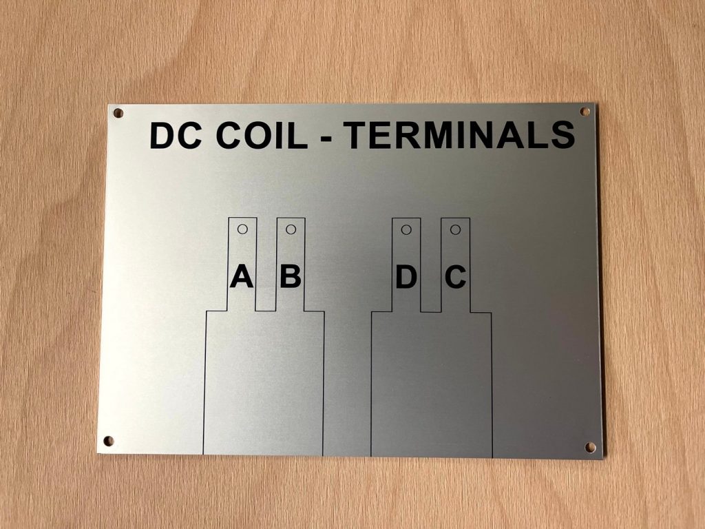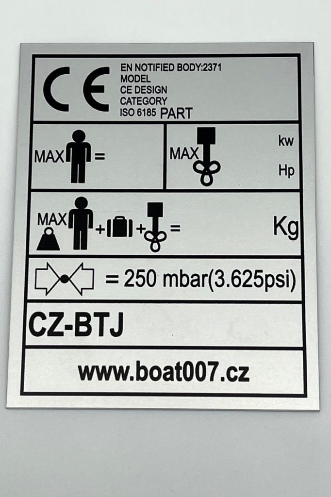 We produce aluminium plaques using two technologies. Laser engraving using CO2 or fibre laser, when anodised natural or coloured aluminium sheet is laser engraved, which evaporates the aluminium oxide layer and exposes the natural colour of the sheet. These labels have only two colours, the surface colour of the anodised sheet and the light grey colour after engraving. The labels have good mechanical resistance, which is due to the properties of the anodised sheet, but only two colours.