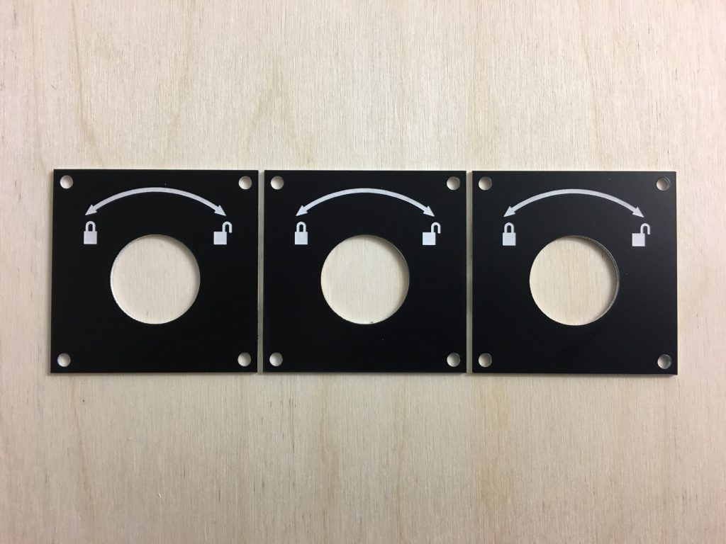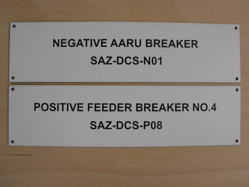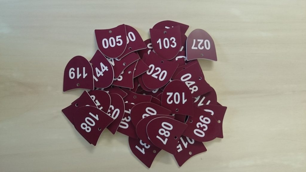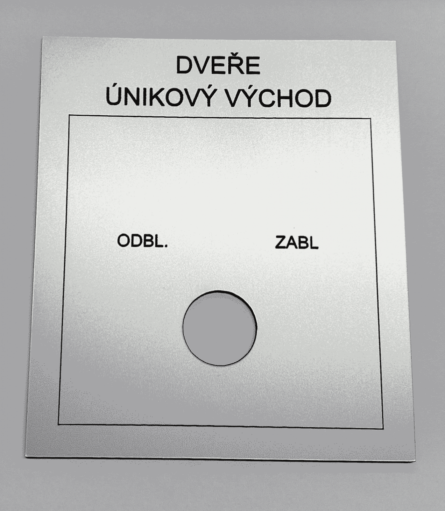 Plastové štítky vyrábíme gravírováním a řezáním dvouvrstvých plastů. Dvouvrstvé plasty jsou plastové desky na bázi mikroakrilátu, které mají jádro jedné barvy, které definuje barvu gravury/textu a to nejčastěji bílé nebo černé a tenkou vrstvu vrchní barvy / bílou, černou, žlutou, červenou, metalickou atd/, která definuje barvu pozadí štítku nebo cedulky. Laser odpaří vrchní barvu a odhalí barvu jádra. Díky výborné zpracovatelnosti laserem je možné plast po gravírování řezat bez omezení tvaru. Stroj štítek nejdříve vygravíruje a poté vyřízne otvory a tvar štítku dle požadavku zákazníka. V případě nutnosti mít štítek výcebarevný je možné desku potisknout na UV tiskárně a vyříznout na laseru.