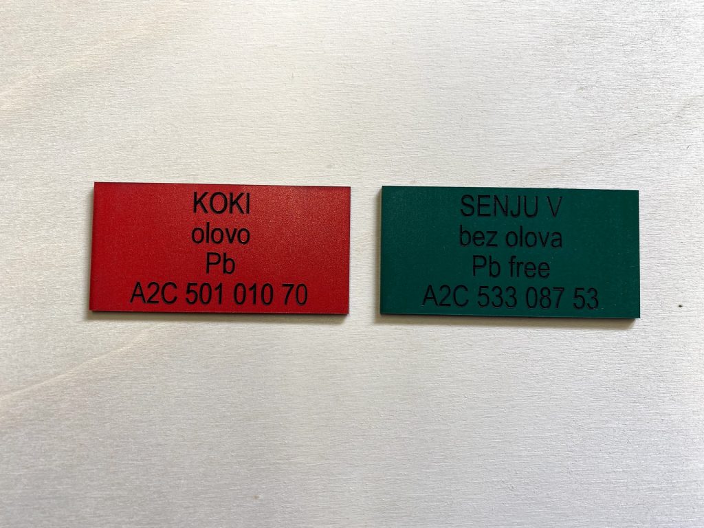 Desky se vyrábí v různých kombinacích barev včetně metalických, které jsou cenově dostupná alternativa štítků z kovu. Štítky je možné podlepit adhezivní vrstvou, která usnadní finální montáž.